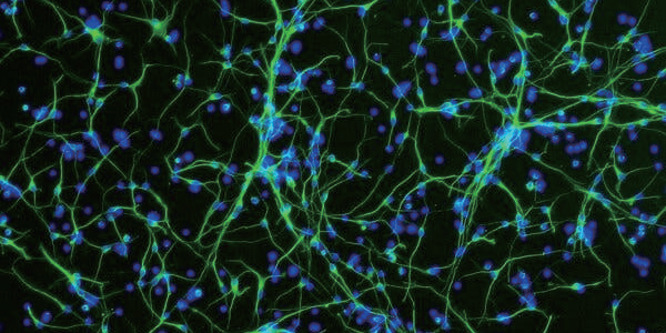 人类大脑海马体神经元的荧光显微图像