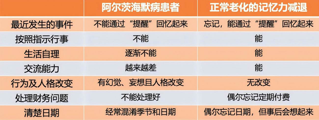 “年龄上去了,老糊涂了,记性差也是正常现象”,这是我们平常会听到的对记忆减退的一种解释。不可否认,随着年龄的增加,正常人也会有记忆力的减退,是自然衰退的表现,但这跟阿尔茨默病还是有区别的。