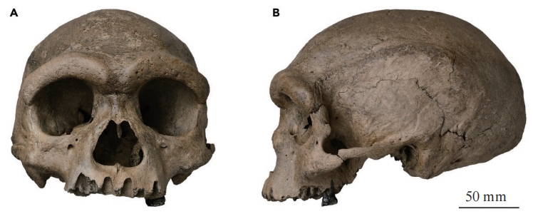 龙人头骨 (A) 正面视图 (B) 侧面视图